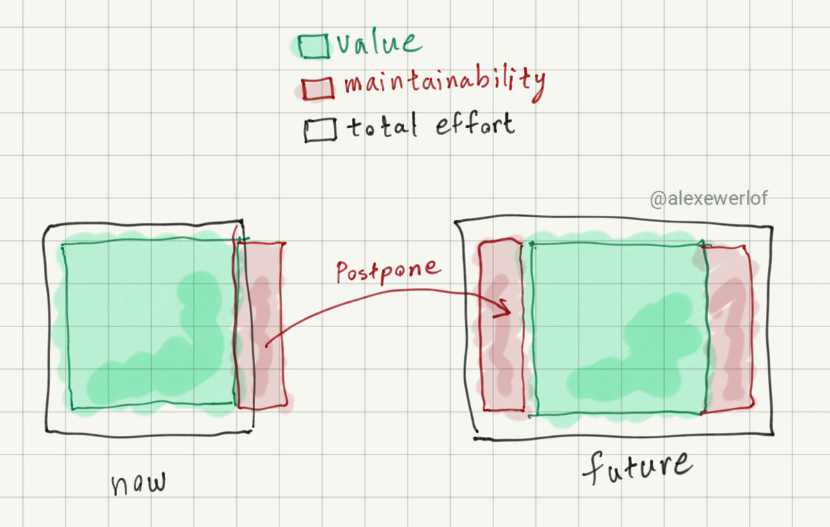 Because of one of these three factors, we decide to postpone working on a feature or a capability in the product, reasoning we will do it later.