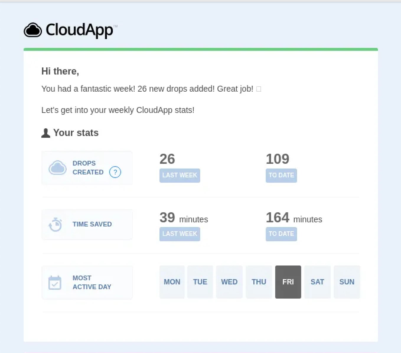 Here’s an example of a usage summary done well by CloudApp.