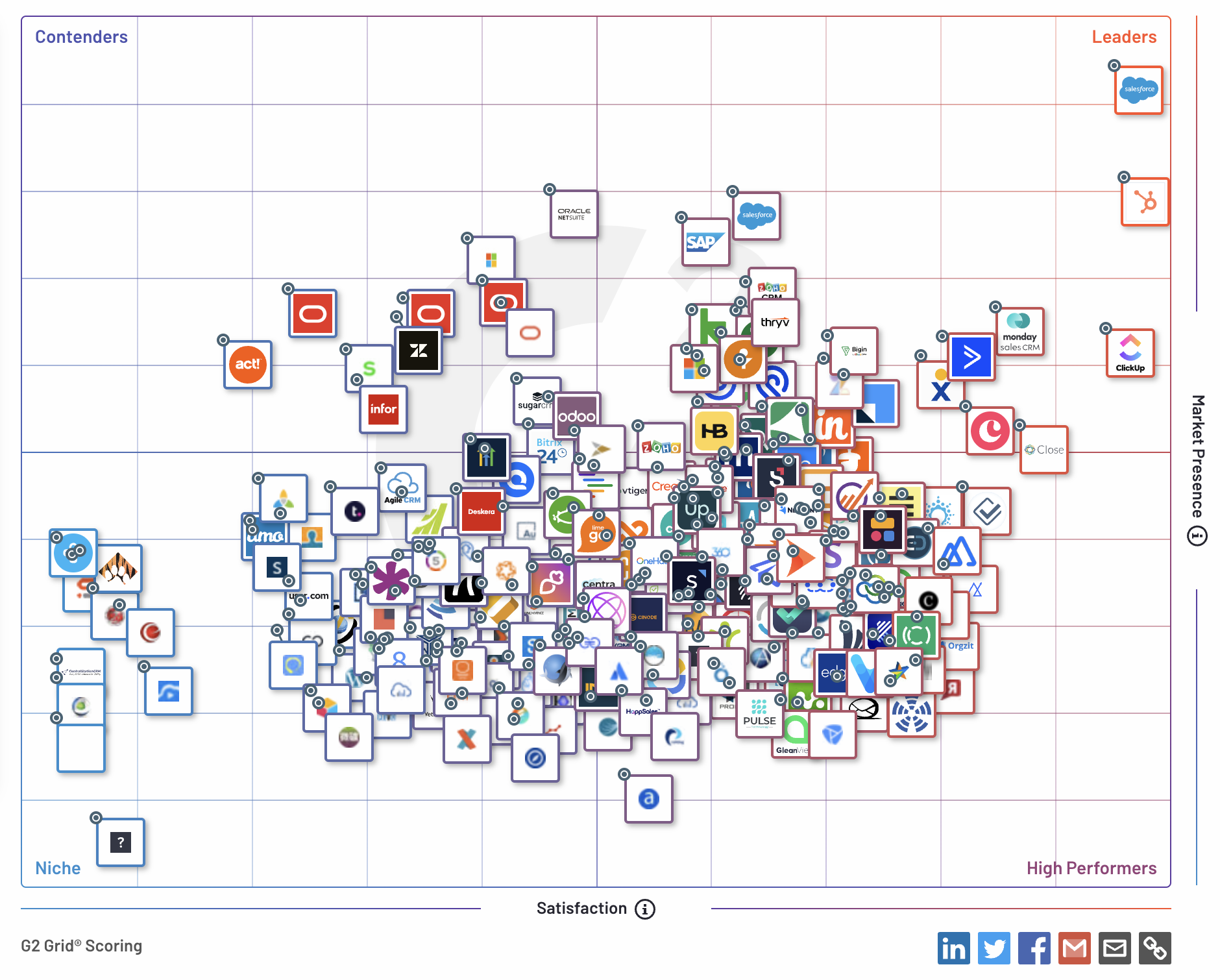 A screenshot of G2’s CRM grid – https://www.g2.com/categories/crm