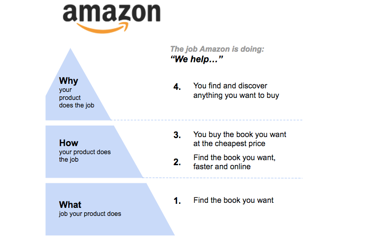 This is a framework shared by Kit Ulrich, who gives an example to describe Amazon and its JTBD delivery to B2C customers.