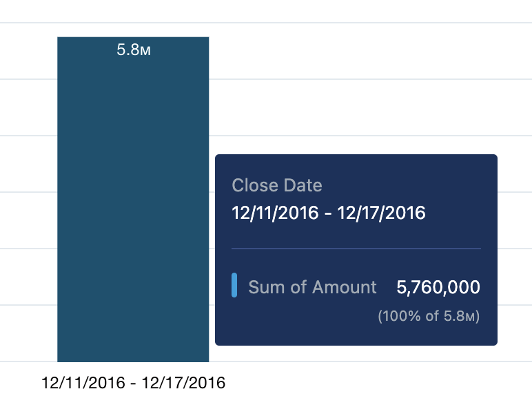 The answer: you can’t add a simple number format or a currency prefix to this report. This is a pretty basic form of customization and is a capability that you can access in a Salesforce Dashboard (which is not the same as the chart you will find in a Salesforce report).