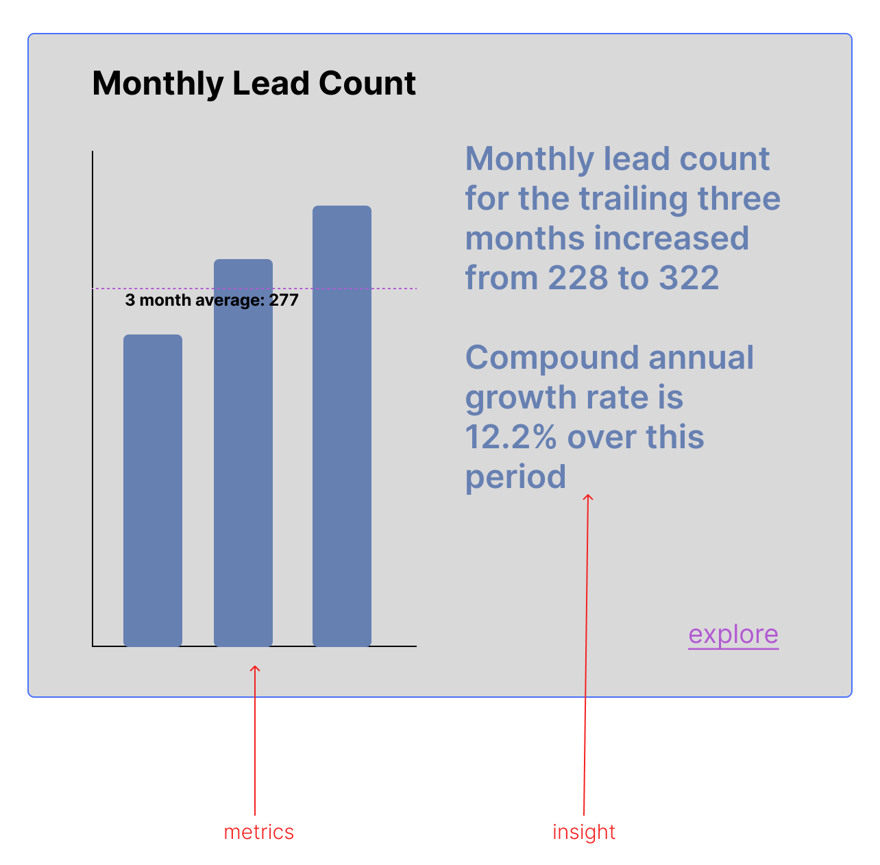 Insight then becomes an observation of how we think and what we know about a business process, resulting in a narrative that makes sense to someone in the business who sees that report or reads that information card.