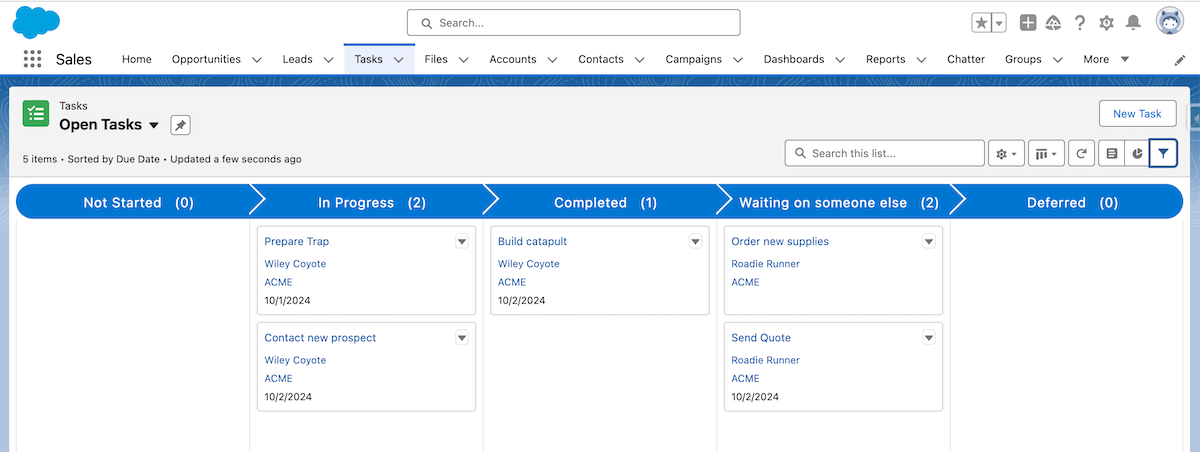 Not so when it comes to tasks and events. If you’ve got a rep handling multiple accounts, deals, and people, that person will have many tasks in many stages and precious few ways to avoid overload.