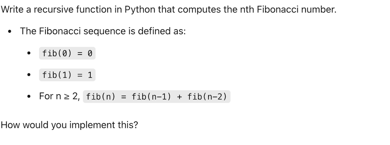 When I created the initial bot, I asked ChatGPT to assess my level as a Python programmer based on my answers to several questions, and we established the questions that made sense collaboratively based on my understanding. As I’ve progressed, the bot has given me more comprehensive questions that focus on problem solving instead of basic function usage or text manipulation in Python.