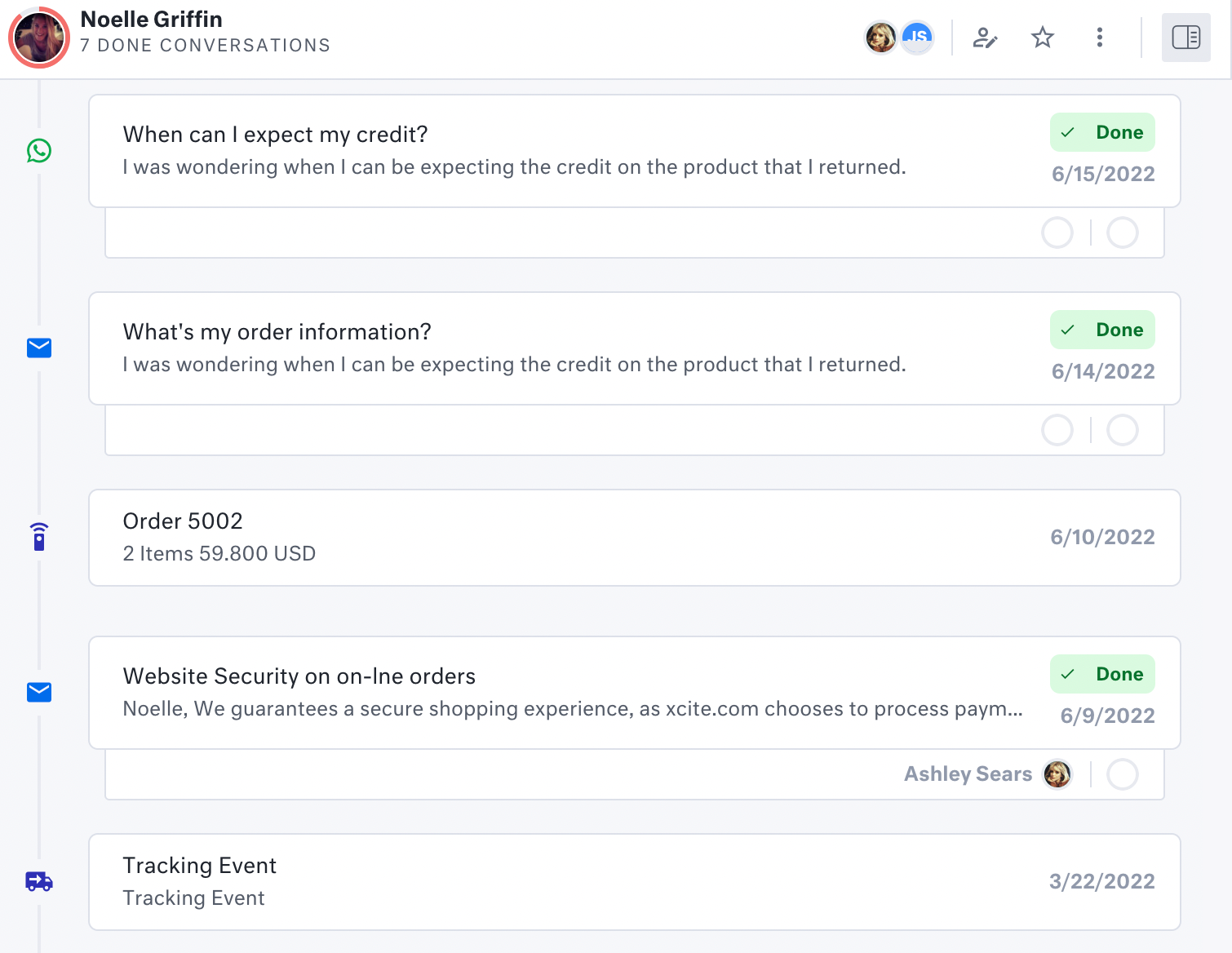 As a company, you want to appear as one voice to the customer, and they (typically) want to engage with the fewest people possible to solve their problem or start something new. The customer also often wants to see a subset of the same information you would see in a timeline – a method of communication that raises trust.