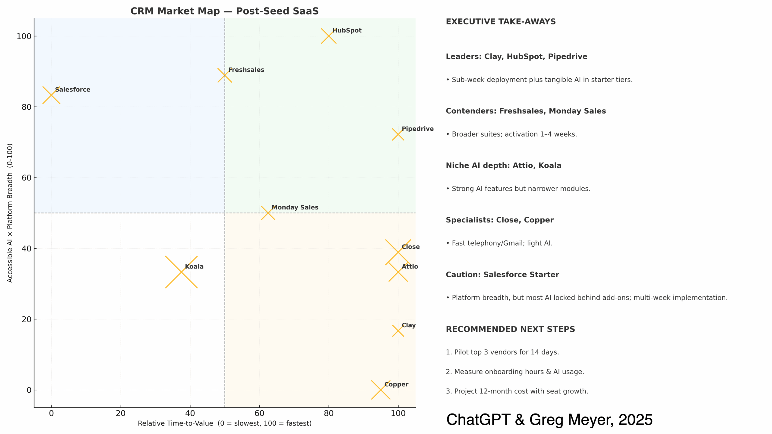 Best CRMs for Startups: 2025 Market Map by Speed, AI, and Cost