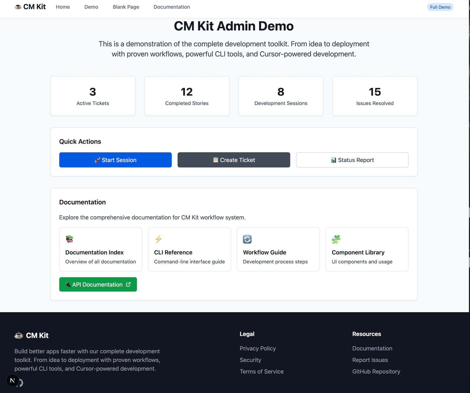 The CM Kit centers around 15 CLI commands that create a structured development environment: