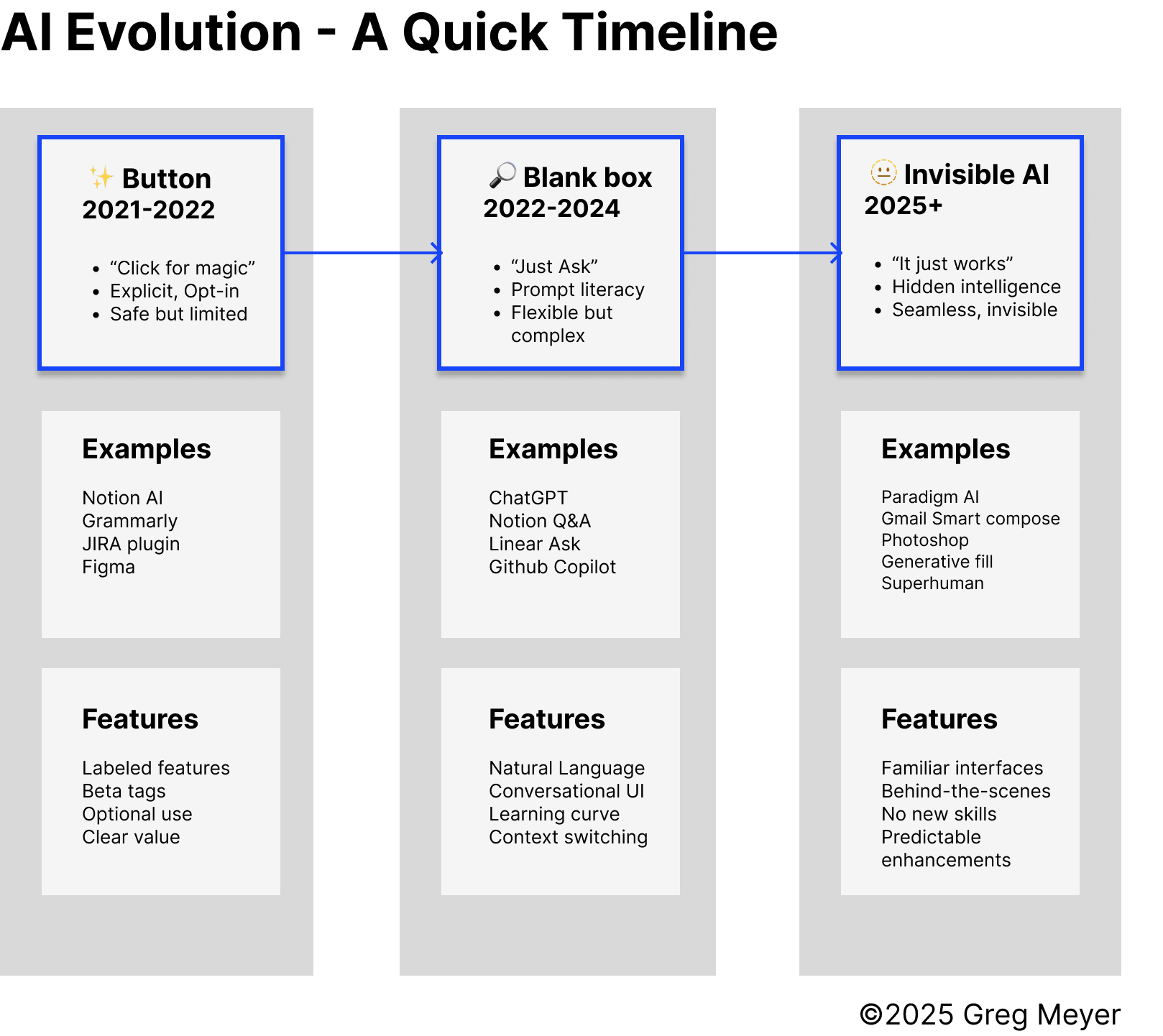 But remember: this isn’t just about user experience. It’s about recognizing that people don’t know how to use AI yet because it’s too new. So design for what users can handle now, not what they might be able to handle in the future.