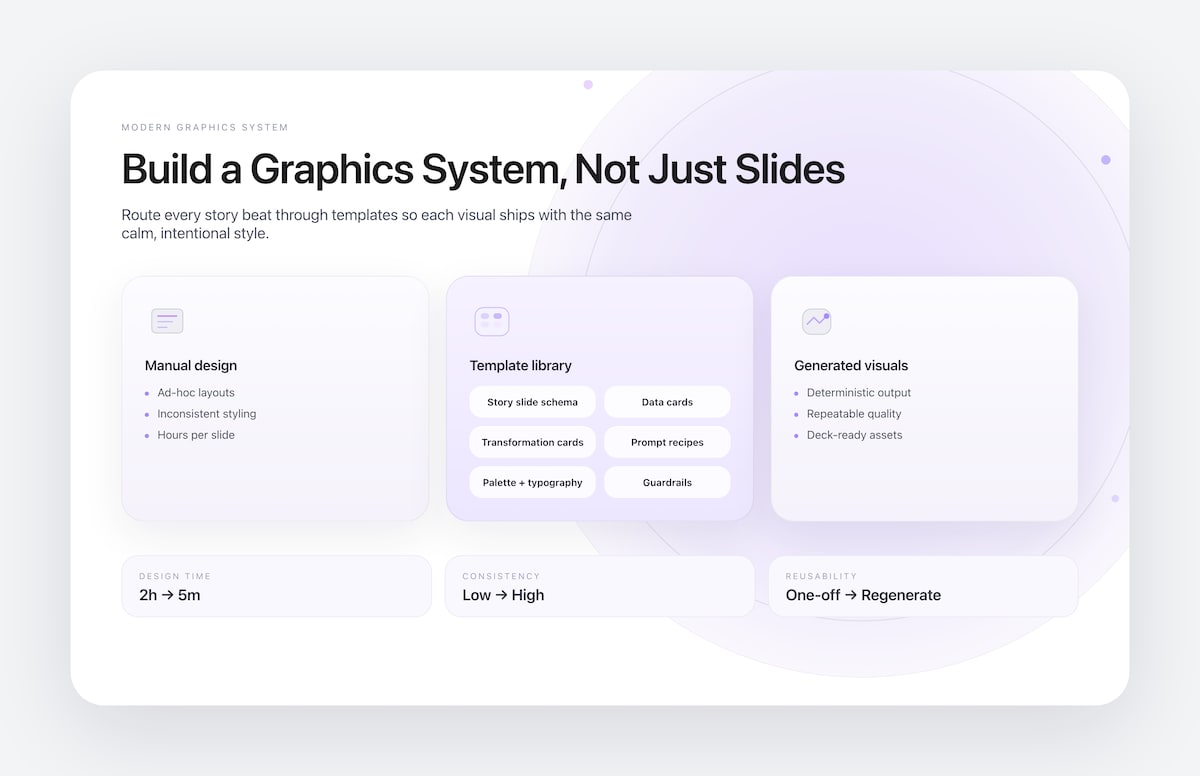 That trio gives every figure a narrative arc and keeps even auto-generated slides rooted in reality. Start there, and your templates become a delivery mechanism for insight instead of a factory for AI slop.