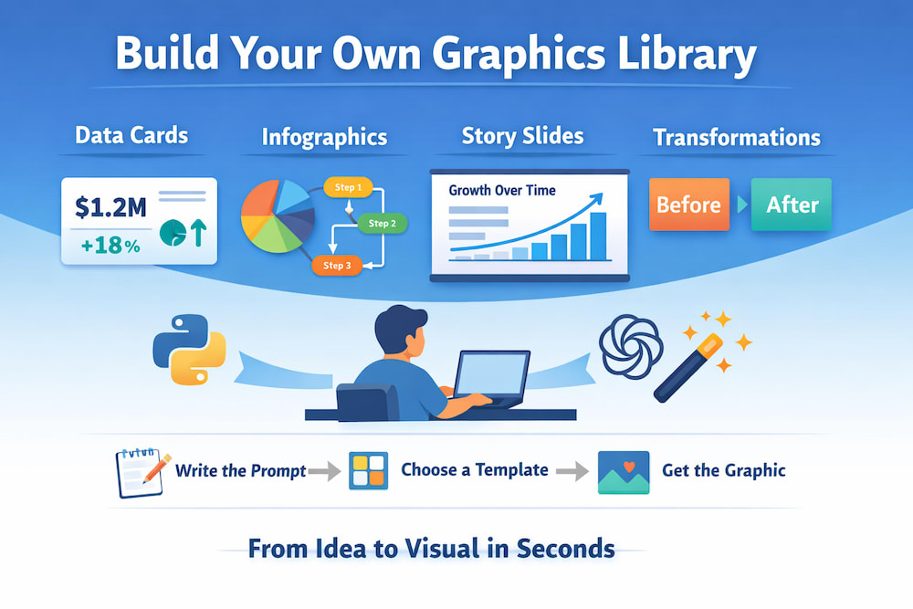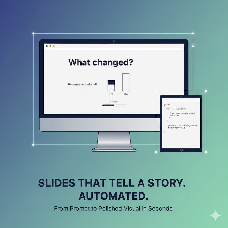Think of it as your answer to those “can’t you just tweak the deck?” asks that always pop up ten minutes before the meeting. Instead of forking a Figma file and praying you remember every revision, you regenerate the graphic with updated data.