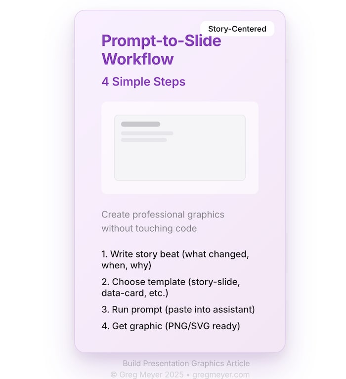 What’s the takeaway? This is the practical follow-up to Stop building slides: now you can actually prompt a deck-quality slide that keeps the story at the center. The robots will keep getting better at spitting out decks, but it’s on us to orchestrate the story.