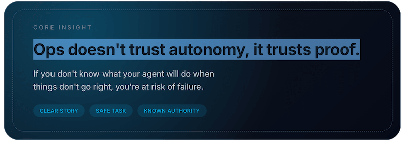 Agents, like other code, often reach production carrying unexamined assumptions about authority, cost, failure, and trust. If your team is building agents, your job as an Ops Leader isn’t just to understand the “jobs to be done” or only to read the code if you’re a technical lead.