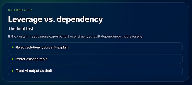 If your system requires increasingly skilled people to keep it running, you didn’t build leverage; you built a dependency.