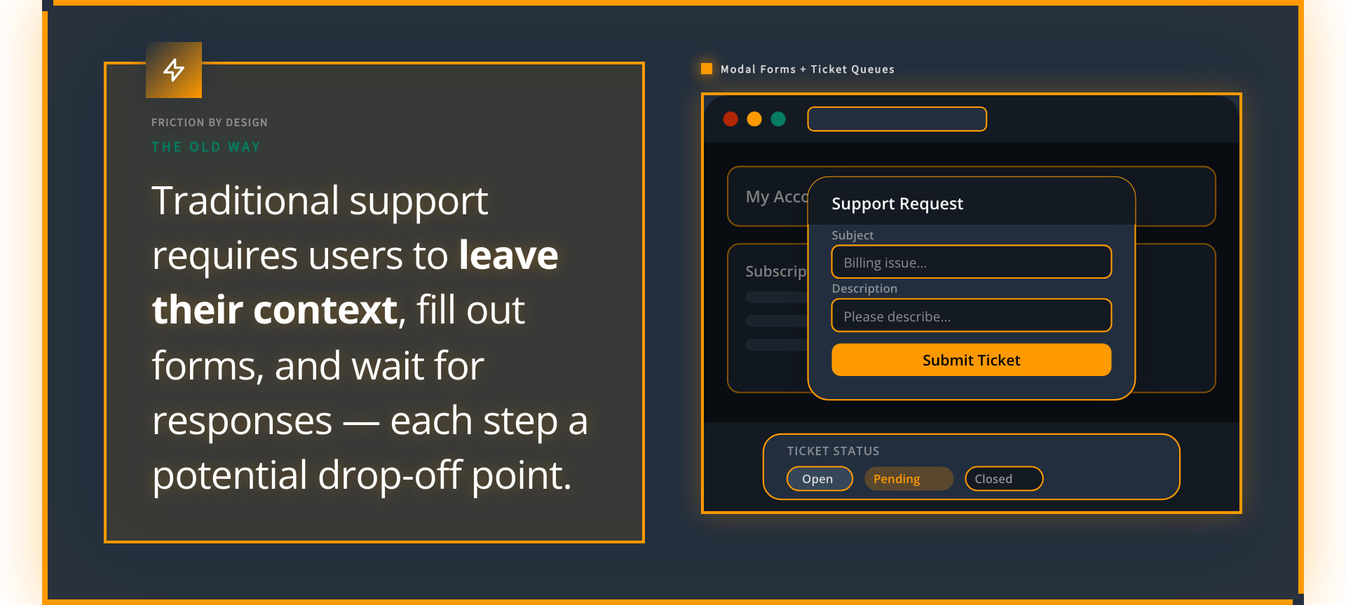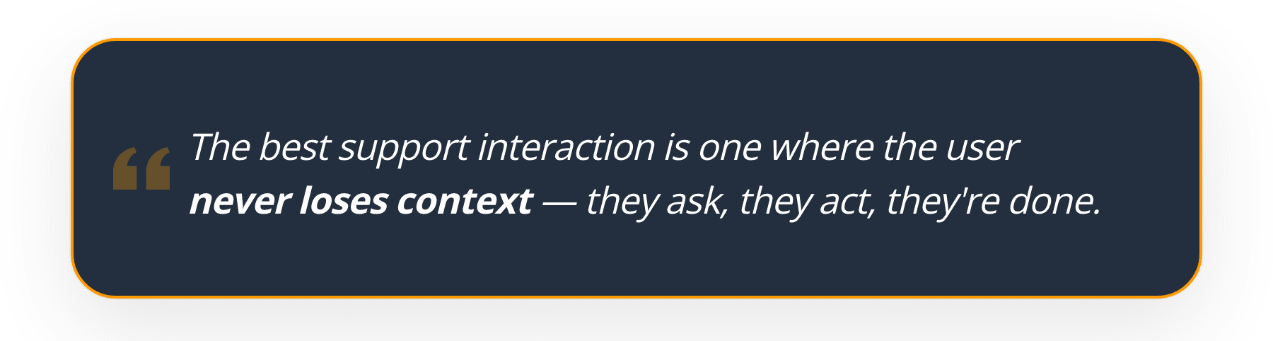In an inline chat model, those boundaries blur. The system can guide the user, suggest next steps, and sometimes complete the action directly. The chatbot isn’t replacing resolution. It’s replacing waiting.