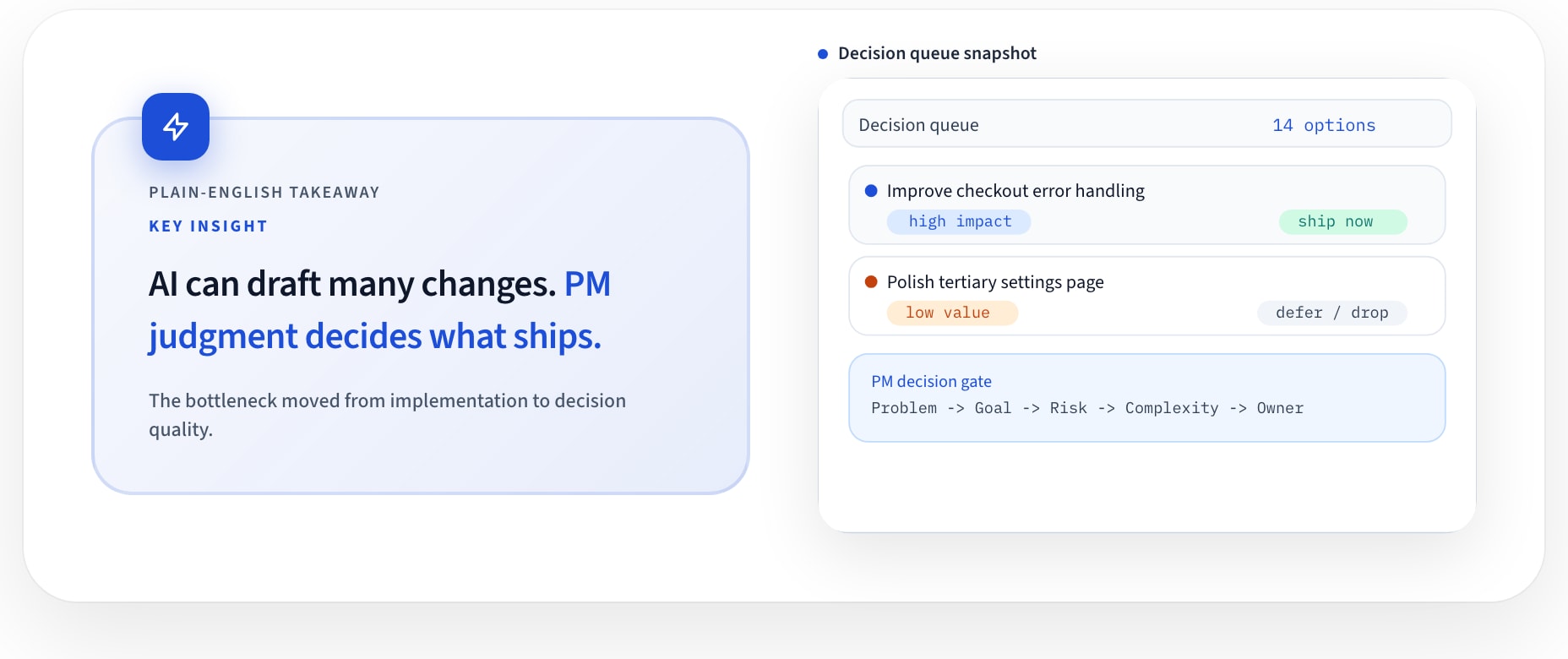 PMs who can do that become force multipliers. They turn execution abundance into focused product progress instead of complexity debt.
