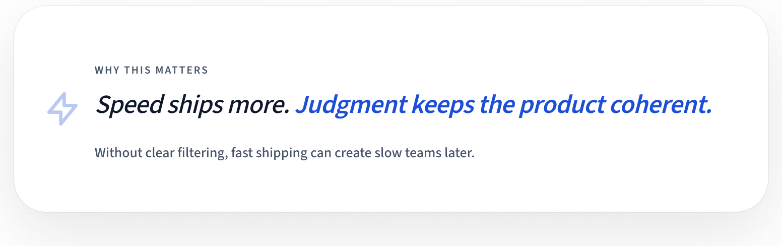 Engineers can spend more cycles on architecture and reliability. PMs can spend more cycles on decision quality and coherence. When execution is cheap, relevance is the discipline.